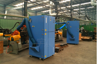 我公司生產的小型單機除塵器是國內較先進的除塵設備,采用的是高效濾袋式過濾器,和高性能風機以及震打系統。在設備運行過程中,由于過濾袋表面粉塵的連續沉淀,就逐漸形成了阻力,很快就會在過濾袋表面達到飽和,因此,需要定時清灰。它是靠震打電機實現的。高頻震打使過濾袋迅速得到清潔,因此在清潔過程中保證了這種永久性的空氣流動,而不用關閉主機停止工作。設備分為固定式和移動式兩種